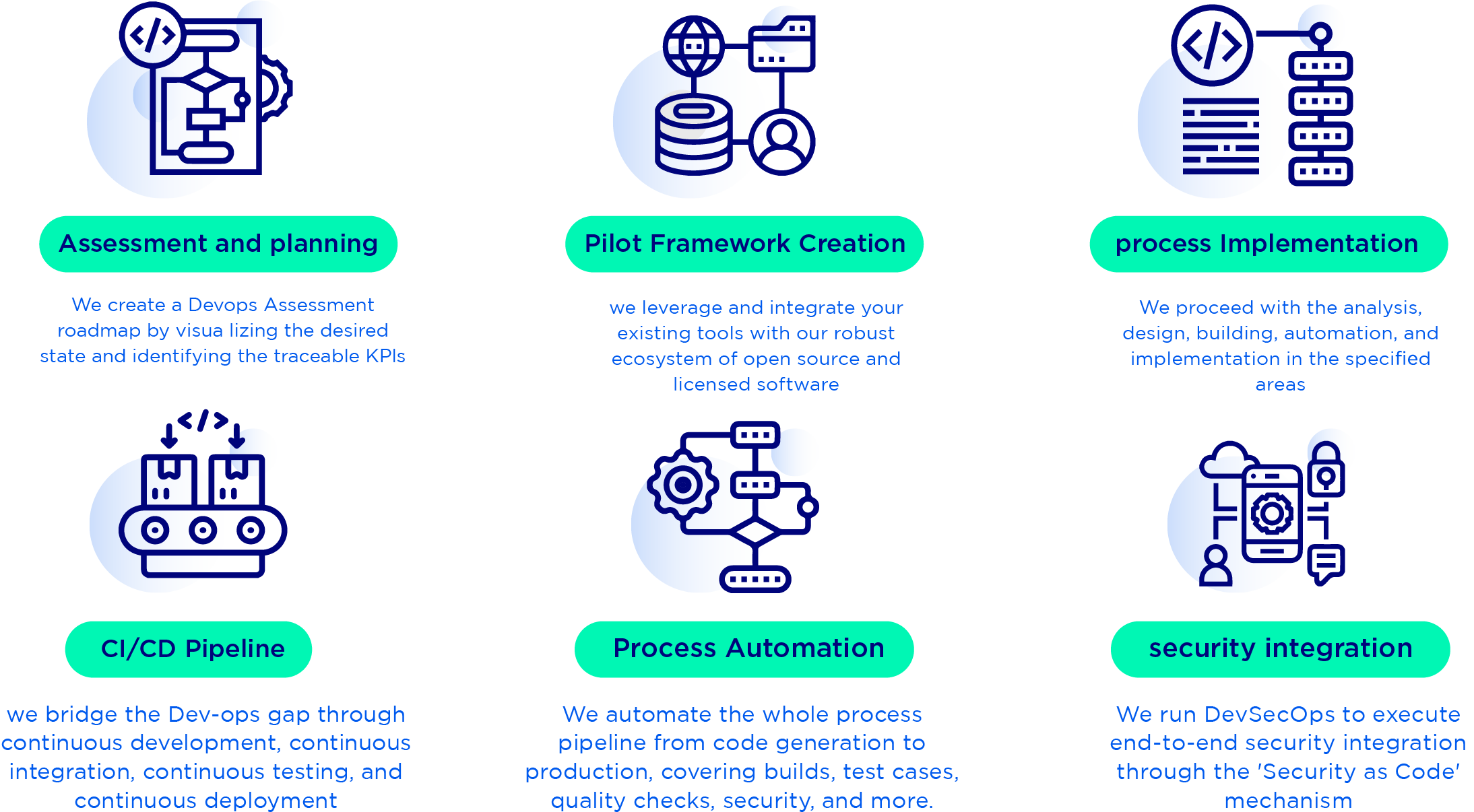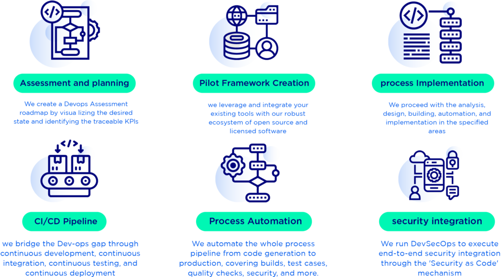 Our DevOps team boasts a diverse range of skills, including expertise in security, automation, cloud, and infrastructure. This diverse skill set empowers us to offer DevSecOps solutions that are tailored to meet the specific technological needs of our clients.
