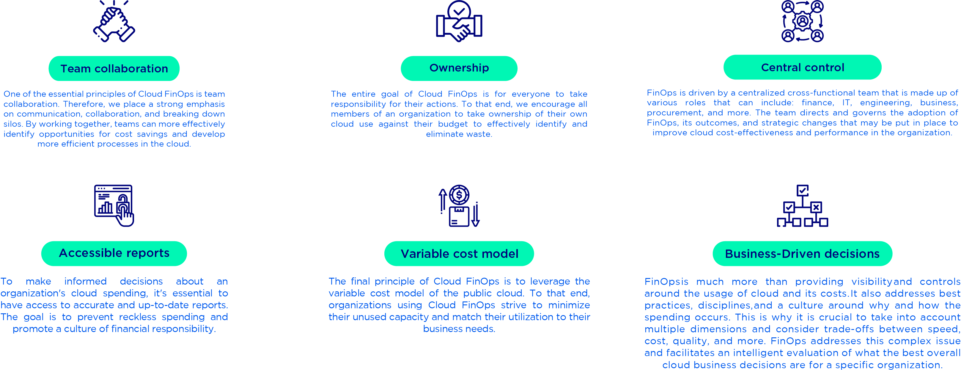 Cloud operations are becoming integral to the information technology and DevOps landscapes, and most corporate finance managers welcome the transition. At Inovola, we follow the optimum framework and principles of FinOps to enable our clients to leverage the full benefits of implementing FinOps solutions. The main framework includes: